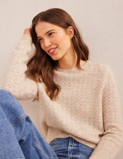 Šis pointelle trikotažo džemperis yra minkštas, purus. jis iškirptas iki pusiau tinkamos formos, todėl sluoksniavimas ant rezervuarų ir trišakių yra labai paprastas.