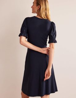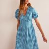 trumpos pūstos rankovės, priglundanti ir besiplečianti forma bei kelius aprėpiantis apvadas visada yra sėkmingas mūsų knygų derinys, todėl sukūrėme dar viena iteracija šios suknelės pavidalu. be to, jis netgi turi kišenes, paslėptas šoninėse siūlėse. laimi visiems.