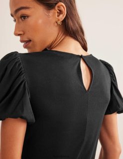 apranga lt Boden moterys pūstomis rankovėmis trikotažinė midi suknelė juodas 284XZZ1322