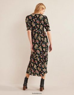 Ši krepinio midi suknelė negaili smulkmenų. Smocked rankovės suteikia moteriškumo, o šoninių siūlių kišenės užtikrina tobulą apdailą.