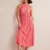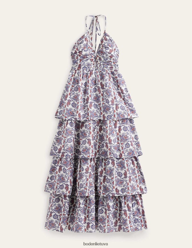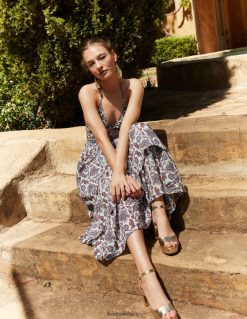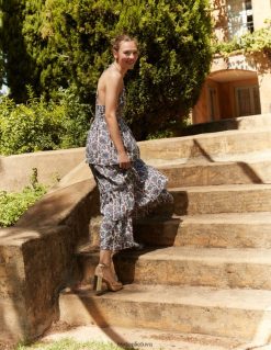 šios maksi suknelės raukšlėtas liemenėlis ir iškirptė daro ją vienodai romantišką ir elegantišką, o ra-ra pakopinis sijonas suteikia apimties, kuri juda su jums, kai keliaujate į šokių aikštelę.