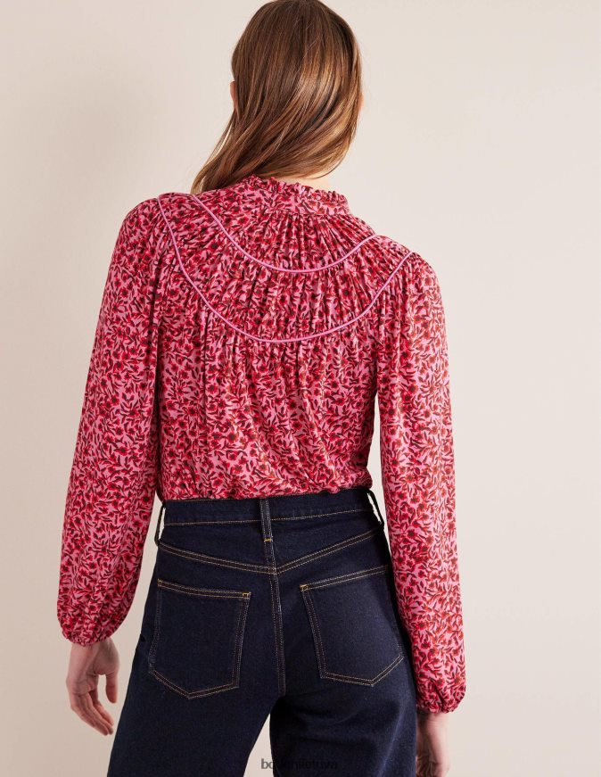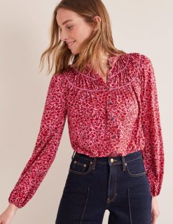 apranga lt Boden moterys raukšlėti jungo marškinėliai džinas putojantis ir abstraktus vynmedis 284XZZ1446