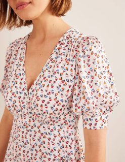 Ši arbatos suknelė yra pagaminta iš prabangaus atlaso, apipavidalinta imperijos juosmeniu ir audiniais dengtomis sagomis – dėvėkite savąją nuo ryto iki vakaro (tai universalu).