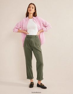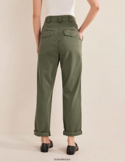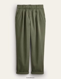 aplenktos, geriausiu įmanomu būdu šios skalbtos medvilnės kelnės pasižymi lengvu elegancija. dėl atsipalaidavusių tiesių kojų formos juos lengva apsirengti aukštyn arba žemyn.