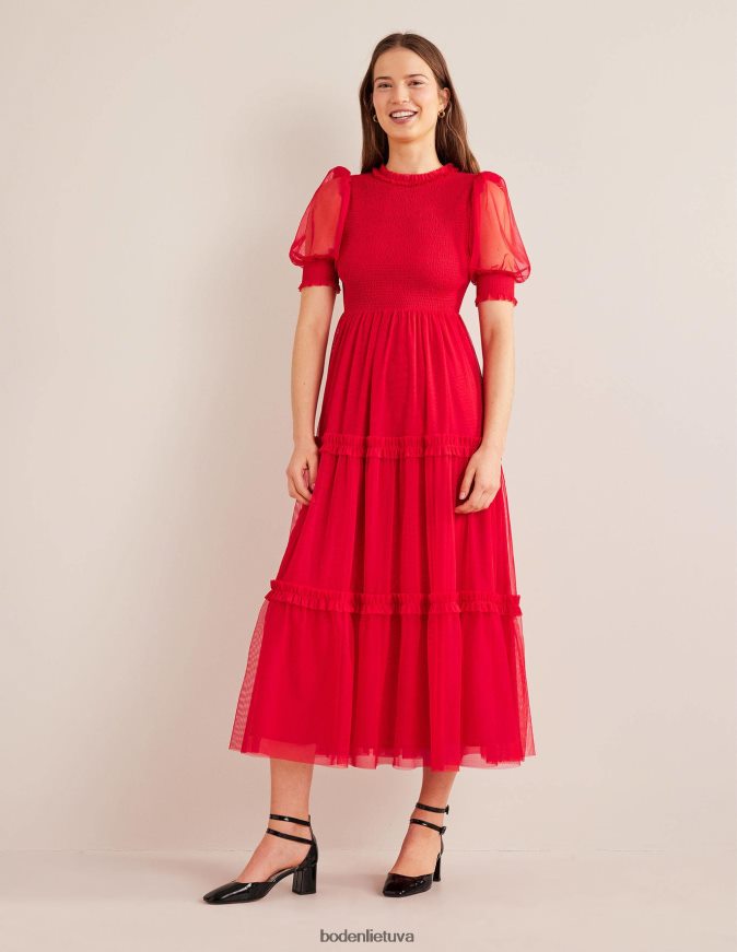 šioje maxi negaili smulkmenų. Smocked liemenė ir didelės rankovės užleidžia vietą eterinio tiulio sluoksnis po sluoksnio. tai teiginys apsirengimas geriausiu būdu.