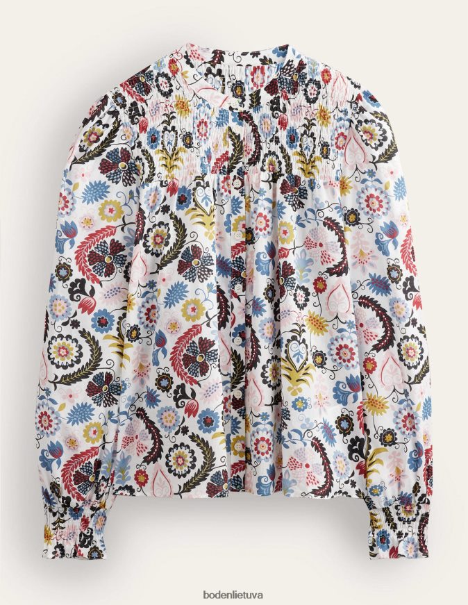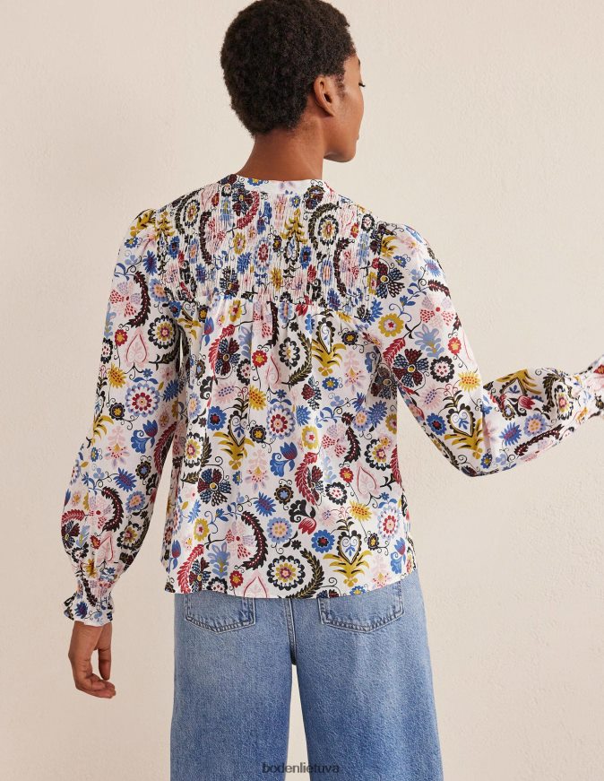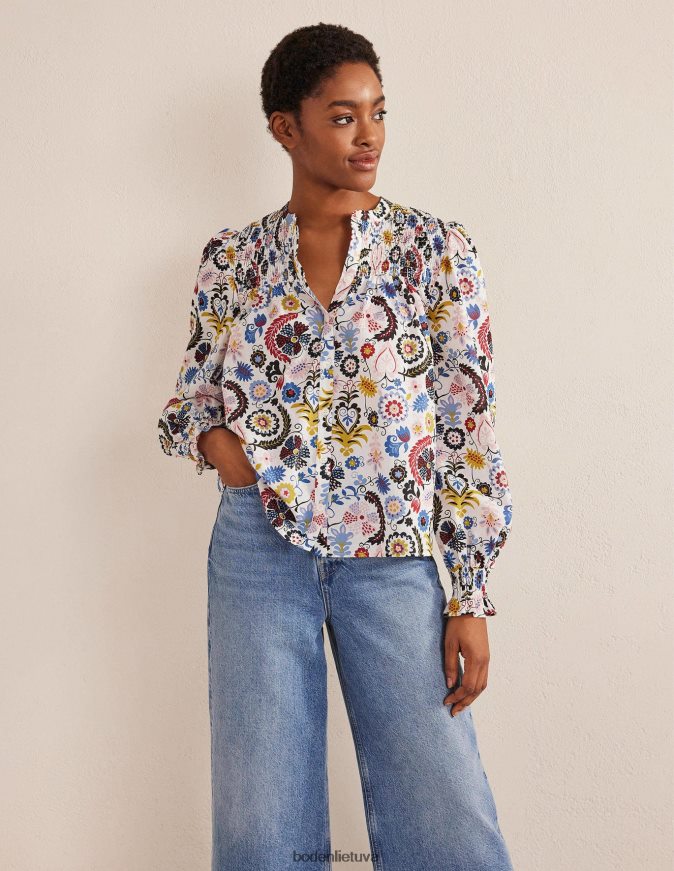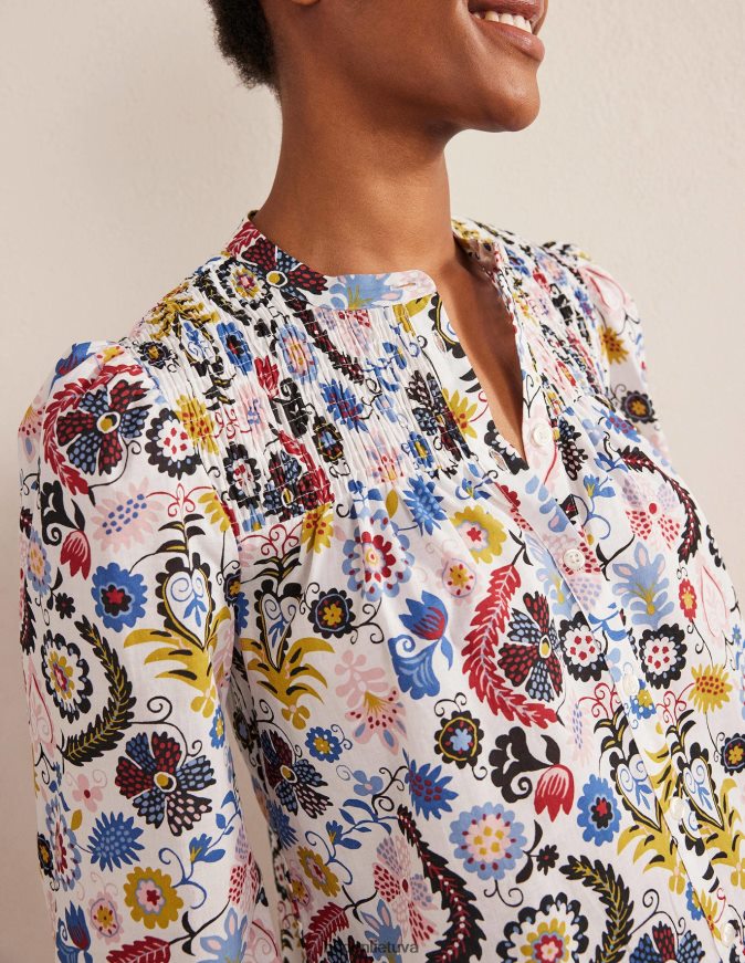 Ši banguota palaidinė, pasiūta iš šnabždančios medvilnės, puikiai tinka šiltomis dienomis. smocked jungas ir rankogaliai išryškina tūrinį siluetą.