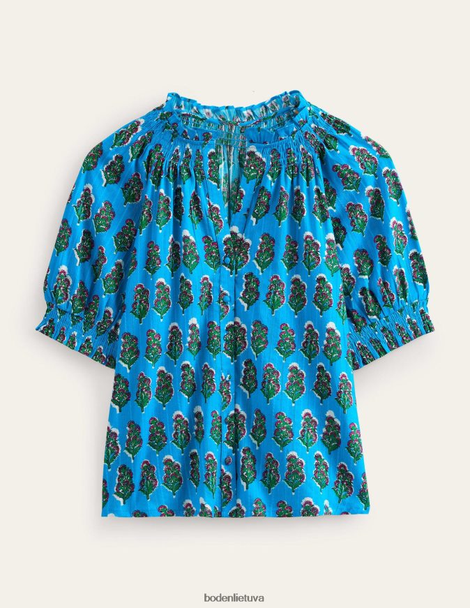 Pagaminta iš erdvios medvilninės vokos, ši palaidinė yra pūstomis rankovėmis, o rankogalių ir iškirptės akcentai yra smėlinukai. įsukite jį į atskirus, kad labiau priglustumėte, arba palikite laisvą.