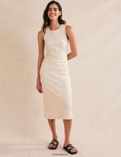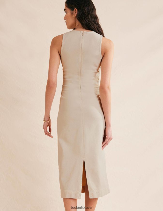 apranga lt Boden moterys šoninė rumbuota stulpelio midi suknelė ekru džinsinis audinys 284XZZ1304