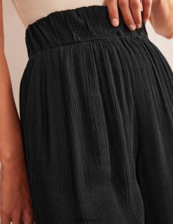 šios švelnios plačios kelnės turi tekstūruotą, raukšlėtą apdailą, kurią lengva dėvėti ir lengvai supakuoti. elastinga juosmens juosta padidina vilkimo ir nešiojimo patrauklumą ir išlaiko juos patogius visą dieną.