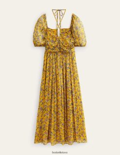 austa aukso siūlais, ši raukšlėta žoržeto maksi suknelė paruošta visiems jūsų vasaros renginiams. raižytas liemenėlis yra suporuotas su nugara plokšte ir baigtas kaklaraiščiais.