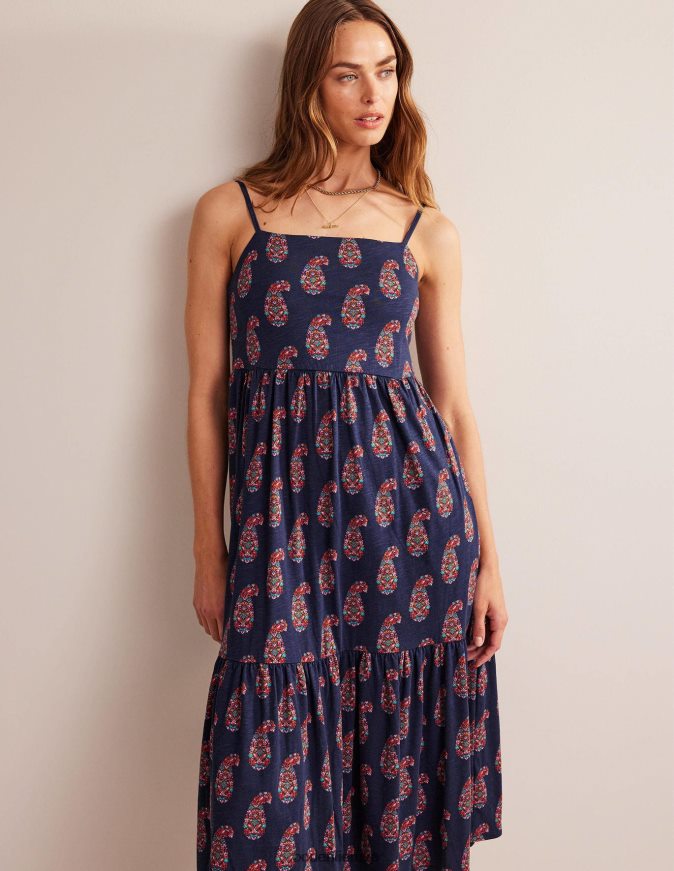 apranga lt Boden moterys Suknelė su petnešėlėmis šviesus tamsiai mėlynas ir saldus paisley 284XZZ1532