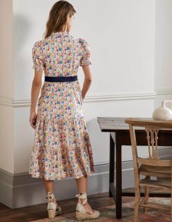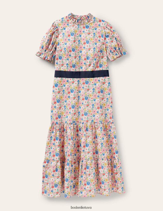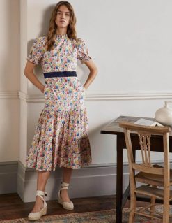 apranga lt Boden moterys Suknelė su raugintu kaklu, pakopinė midi suknelė pieno kokteilis ir elegantiškas žydėjimas 284XZZ2599