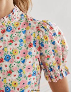 apranga lt Boden moterys Suknelė su raugintu kaklu, pakopinė midi suknelė pieno kokteilis ir elegantiškas žydėjimas 284XZZ2599