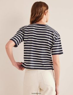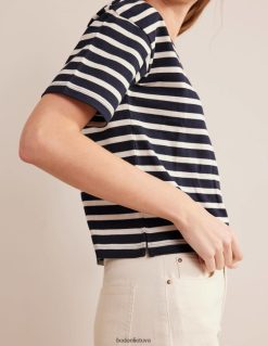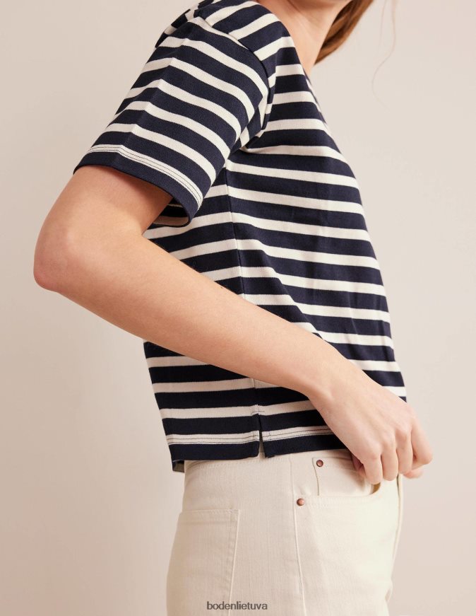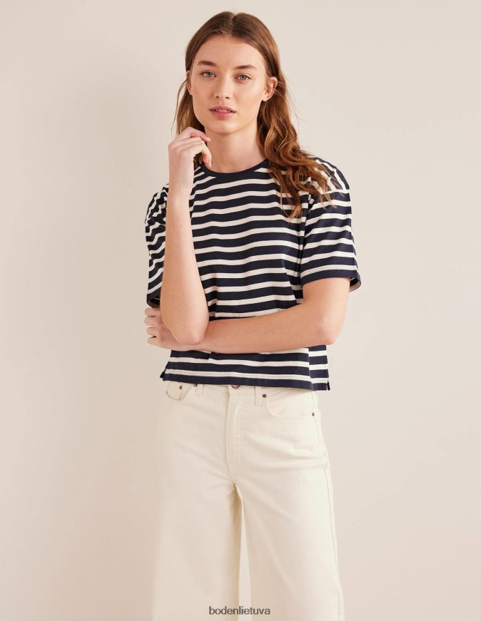 apranga lt Boden moterys sunkiasvoriai bretoniški marškinėliai tamsiai mėlyna/dramblio kaulo juostelė 284XZZ1558