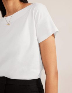 žaidimas su siluetu yra paprastas būdas sudominti kasdienę išvaizdą. šis minkštas medvilnės ir modalinio mišinio marškinėliai yra kirpti taip, kad būtų atsipalaidavę, su glostančiu valties kaklu.