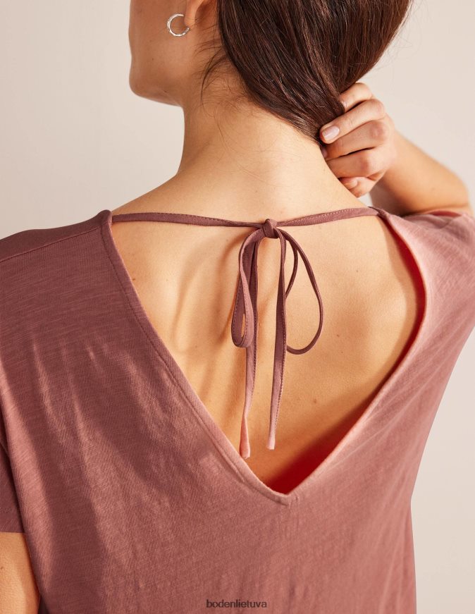 šis marškinėliai su V formos iškirpte (ir nugarėlėmis), iškirpti iš lengvos medvilnės, yra šaunūs įvairiais būdais. jis turi pusiau prigludusią pjūvį, kuris dengia kūną, kad būtų patogus.