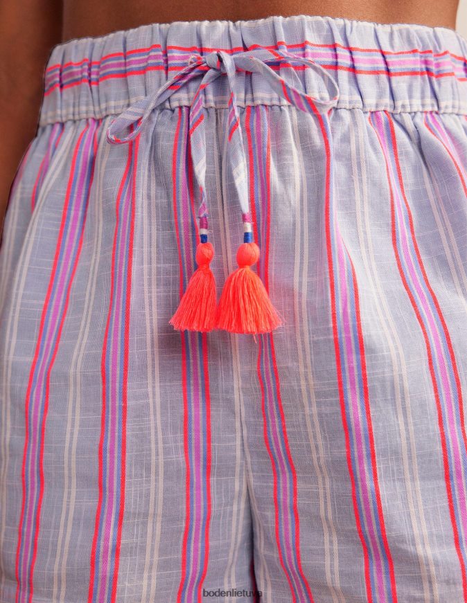 Šių lengvų, atpalaiduojančių šortų tekstūros medvilnės mišinio audinys yra lengvas ir erdvus šiltomis dienomis. kutais surišti raišteliai papildo saulėtą nuotaiką.