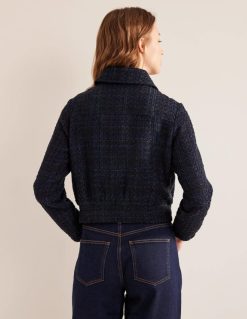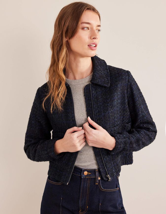 Šios tekstūruotos striukės elastinės juosmens plokštės paryškina apipjaustytą siluetą. sėdi tiesiai virš klubų, todėl puikiai tiks prie aukštų kelnių ar džinsų.