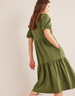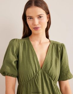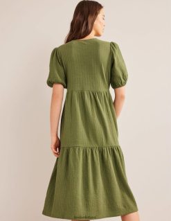Ši trikotažinė midi suknelė, kurią lengva siūbuoti, pasiūta iš susiglamžančio audinio, su V formos iškirpte ir pūstomis rankovėmis.