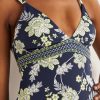 Su u formos juosta, kuri sukuria švelnų krūtinės raukšlėjimą, šis bandeau bikinio viršus turi retro žavesio. dėvėkite su nuimamu apykaklės dirželiu arba be jo.