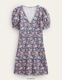 Ši medvilninio trikotažo mini suknelė yra universali puošniai arba apačiam. pademonstruokite pūstas rankoves sluoksniuodami jas po megztu tanku.