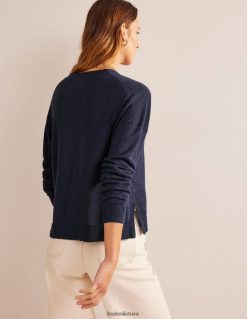 Pagamintas iš lengvo lino, kad jaustųsi kvėpuojantis, šis V formos iškirptės megztinis idealiai tinka vėsiems vasaros vakarams. jis suformuotas kaip atsipalaidavęs siluetas, paryškintas nuleistais pečiais ir skeltukais.