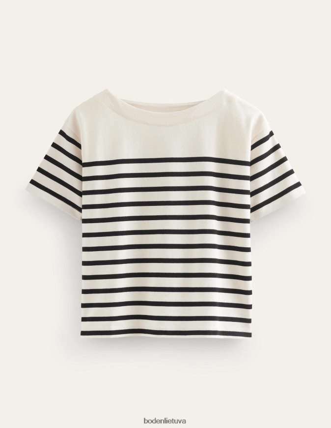 apranga lt Boden moterys valties kaklo dryžuoti marškinėliai dramblio kaulo/juoda juostelė 284XZZ944