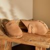 Pasiimkite ramia nuotaika ir įsijauskite į šias lygias odines klumpes. papuošti snaffle apdaila, jie turi prašmatnų uždarų pirštų siluetą ir yra ant kontrastingo stambaus medinio platforminio pado.