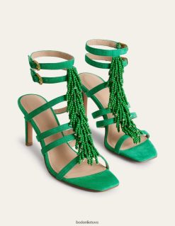 Karoliukais puošti kutai suteikia šioms basutėms su kulnais išskirtinumo. jie pagaminti iš zomšos su plonais dirželiais per pėdą ir tvirtinami aplink kulkšnį.