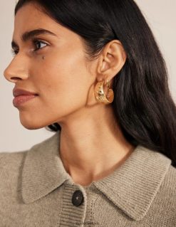 Smulkintos detalės ir subtiliai abstrakčios formos išskiria šiuos žiedinius auskarus – juos puošia klasikinė drugelio nugara.