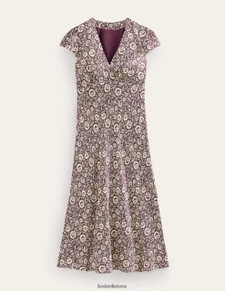 apranga lt Boden moterys pakopinė džersio mini suknelė tamsiai bordo ir žydėjimo kaskados 284XZZ1420